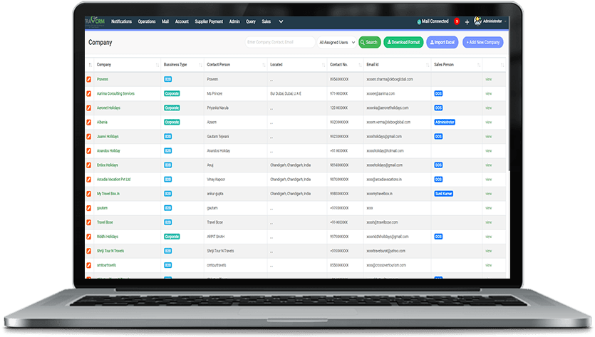 TRAVCRM by Debox Global is a cloud-based Customer Relationship Management software specifically designed for travel agencies and tour operators. It provides a comprehensive suite of tools to automate tasks, manage customer data, and improve efficiency.We understand that Tourism deserves a dedicated CRM specially developed for Travel Companies to take care of the specific needs of their Foreign Customers, FTOs, Hoteliers, Agent Partners, etc. TRAVCRM Best Travel CRM is a Comprehensive Travel Management System specifically crafted to automate Company’s Operations from beginning to end. TRAVCRM is a powerful and comprehensive travel CRM solution that can help travel agencies of all sizes improve their efficiency, boost sales, and provide exceptional customer service.